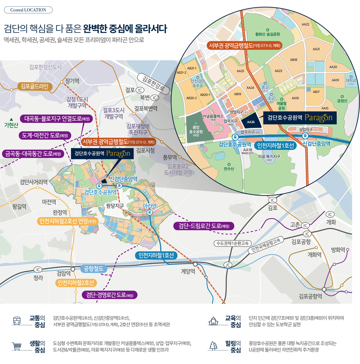 ※ 상기 기재된 도로, 지하철, 학교, 공원 현황 및 개발 계획은 관계 기관의 홈페이지 등을 참조하여 작성된 것으로 사업계획 및 일정은 당사와는 무관하며, 추후 변경될 수 있습니다.